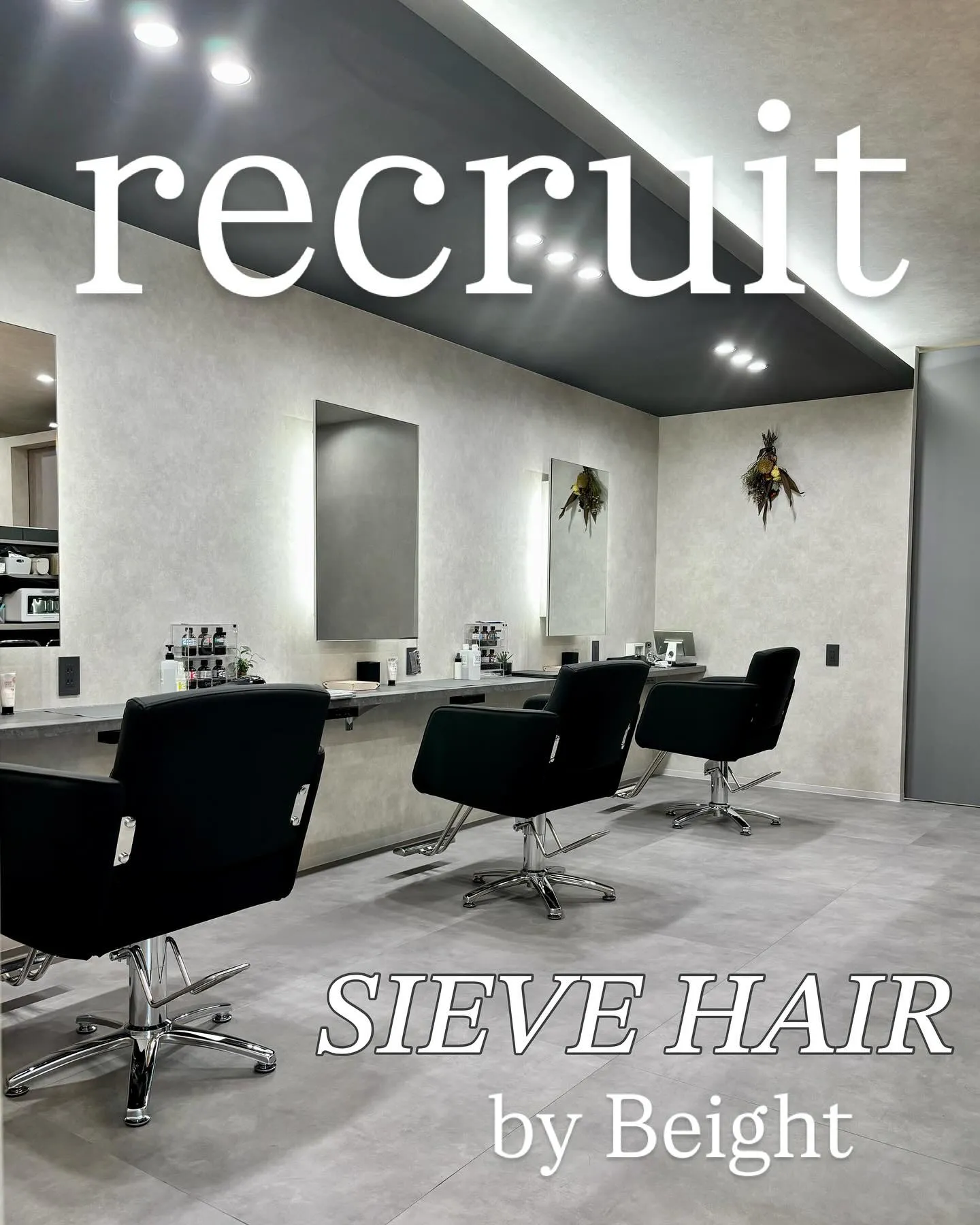 SIEVE HAIRの理念は「人生を美しく彩り豊かにすること。」お客様の”今”に寄り添い、その人らしさを引き出すお手伝いをしています。 それはお客様に対してだけではなく、一緒に働く仲間に対しても同じです。私たちはスタッフ自身の人生も同じように彩り豊かであってほしいと考えています。 美容師として、仕事も、プライベートも、未来もワクワク出来るような「ここでなら、ずっと働き続けていける。」そんな風に思える場所でありたいと願っています。
