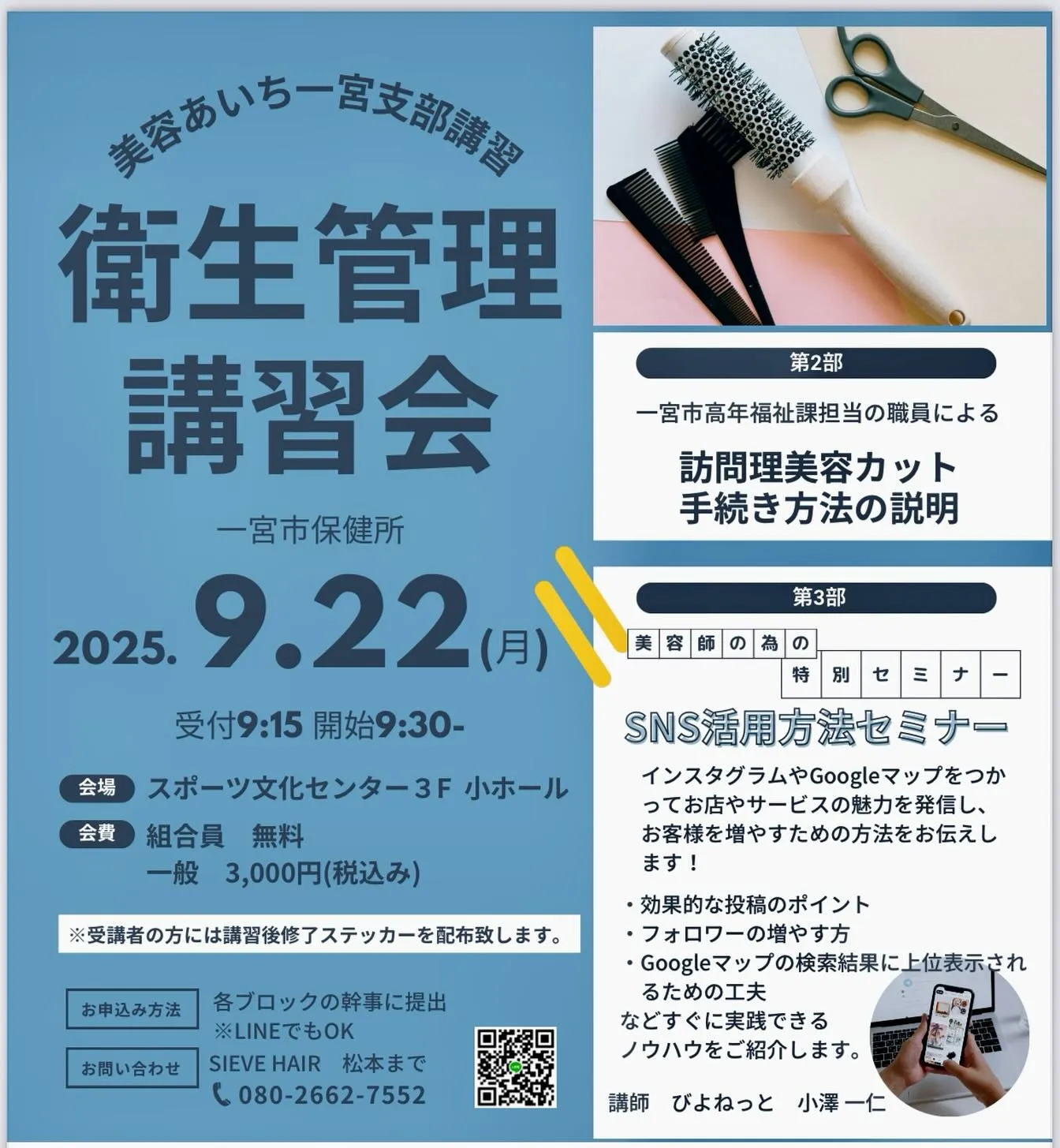 9月22日(月)、美容あいちでは保健所のご協力のもと「衛生管理講習会」を開催します。
